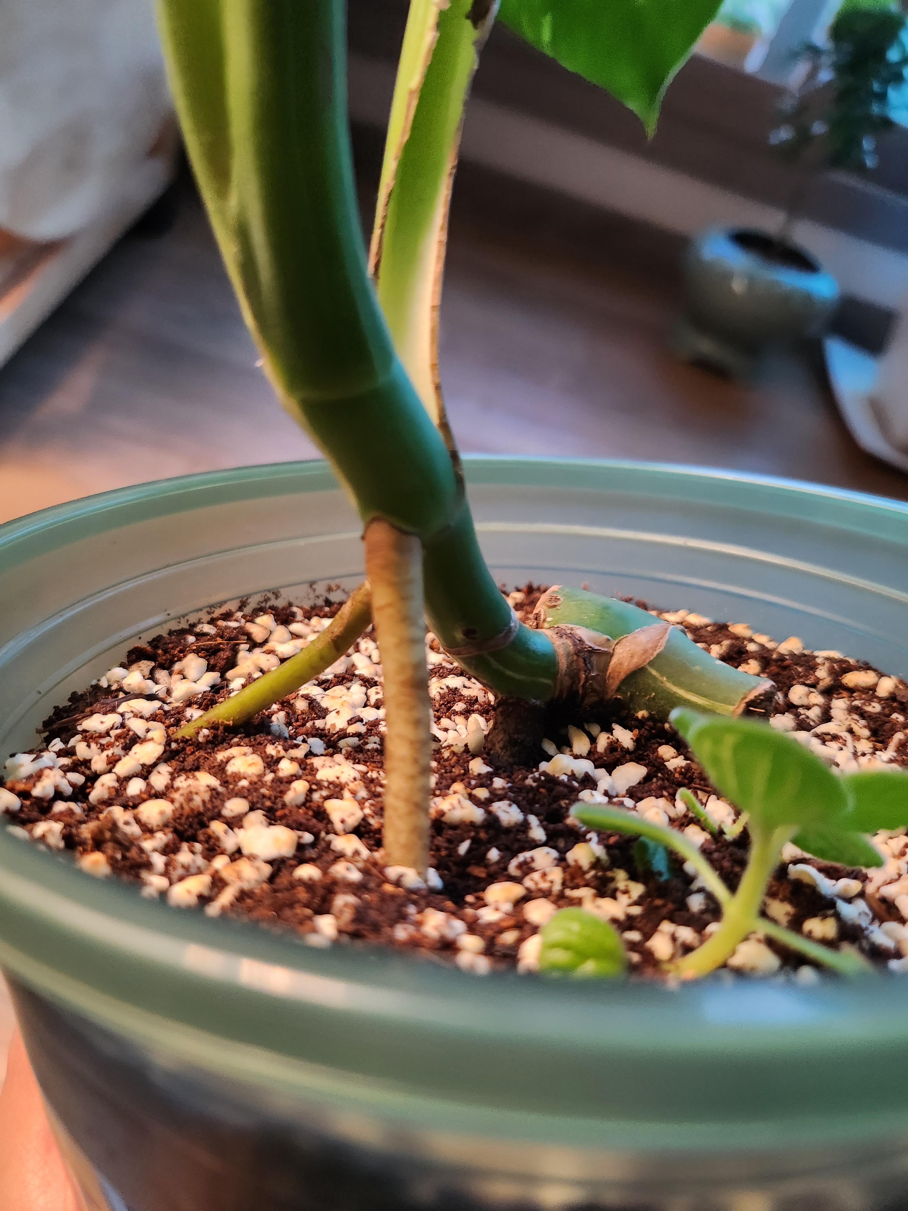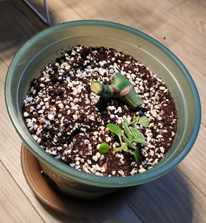 저번에 심어두었던 다른 알보의 몽둥이도 꺼내서 살펴보고 훨씬 훨씬 작은 분으로 옮겨심어주었다.